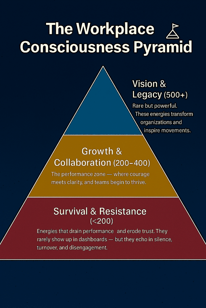 Adapted from Dr. David R. Hawkins’ Map of Consciousness (originally introduced in Power vs. Force). This workplace interpretation is my own perspective and not affiliated with or endorsed by Dr. Hawkins or his estate.